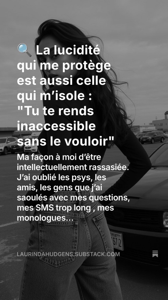 🔍 La lucidité qui me protège est aussi celle qui m’isole : « Tu te rends inaccessible sans le vouloir »